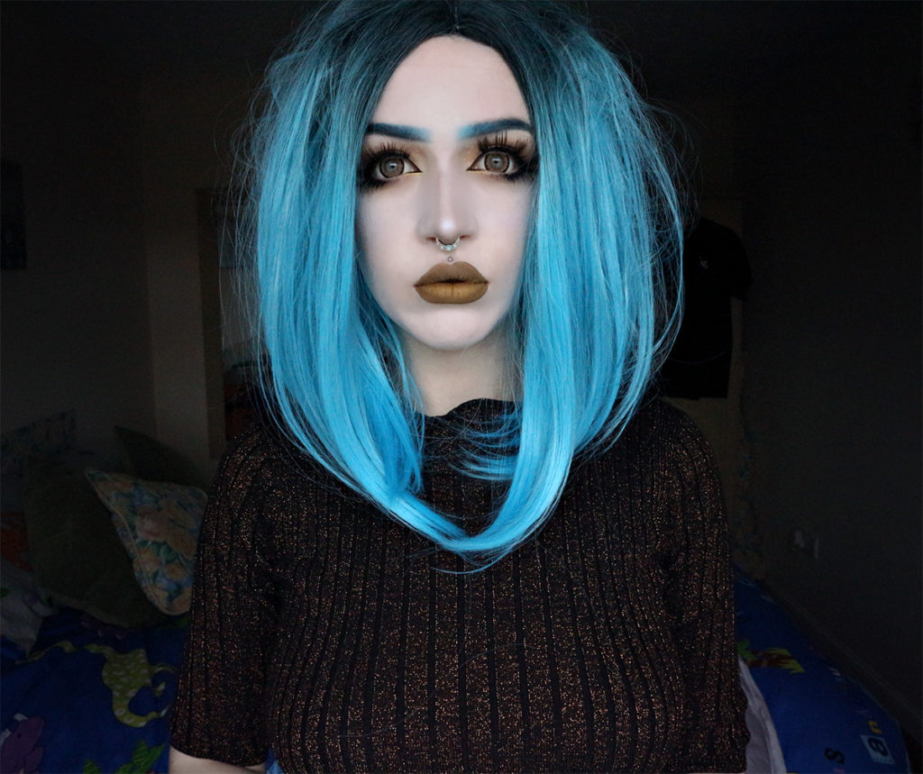 the wig was a bit weirdly formed when i got it, but after some soft brushing it turned really natural and soft! it’s a gorgeous, really vibrant blue wig! love it