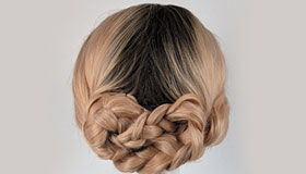 A Natural dark brown colour from roots to tips. This fringeless long bob (lob) styled in loose waves with a centre parting.