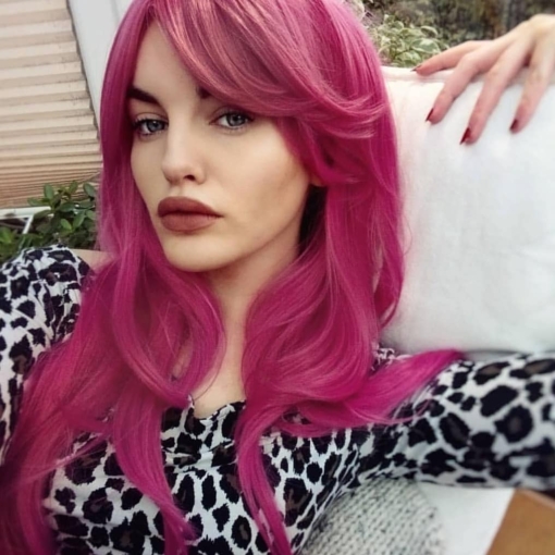 Shocking pink hair is here! Pink Lemonade is a striking sleek fuchsia pink style.