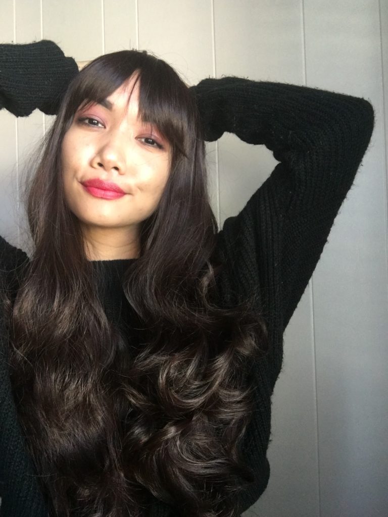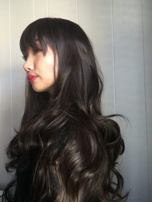This is my first wig from Lush and I love it! Trimmed the length and thinned out the bangs for a more natural look. Not too shiny and you can change up the style with straighteners/curlers (lower than 180)
