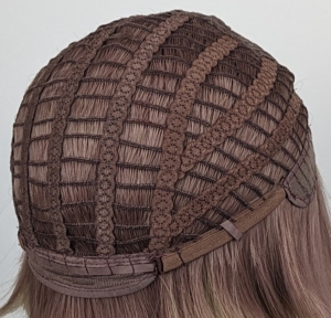 Our wigs are known as open cap wigs, the hairs are sewn onto the wefts that run from ear to ear across the whole head. Then upward lines of fabric run from the nape to the hairline to keep them all in place.