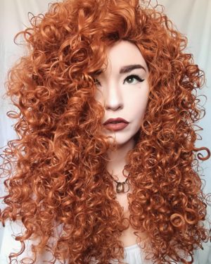 Merida is defiantly one to exaggerate, we are loving the amplified huge soft curls. This is achieved by brushing the curl to make it quadruple in size and with a little patience, you’ll watch Merida grow into this eye-catching look.