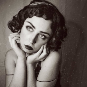 With Noir the bangs have been pined into a wave along the hairline to create this classic vintage look.