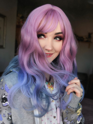 Wonder A fringe-less lace front wig with 5 star reviews. Purple and blue ombre we can’t get enough of.